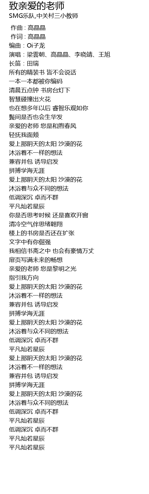 | [00:44.165] | 亲爱的老师 您是和煦春风 |