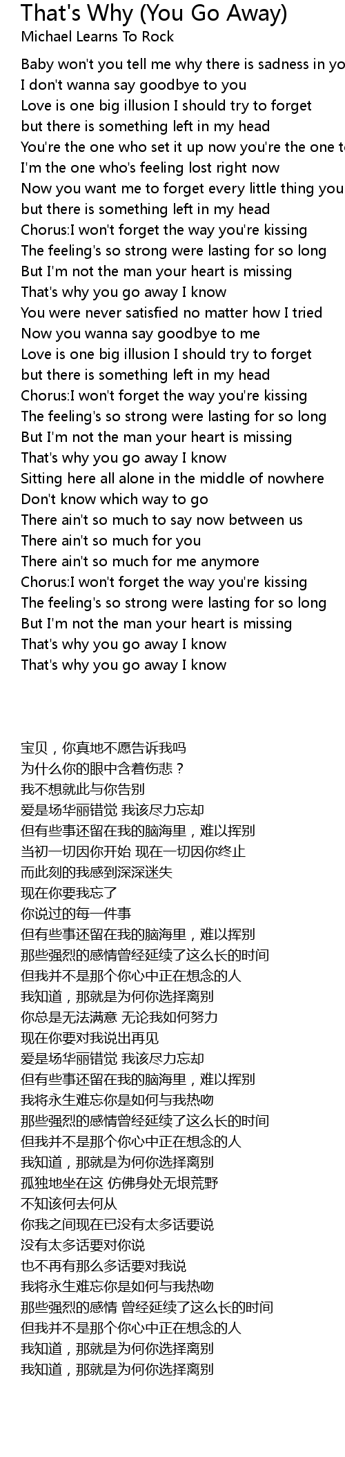 That's Why (You Go Away) Lyrics