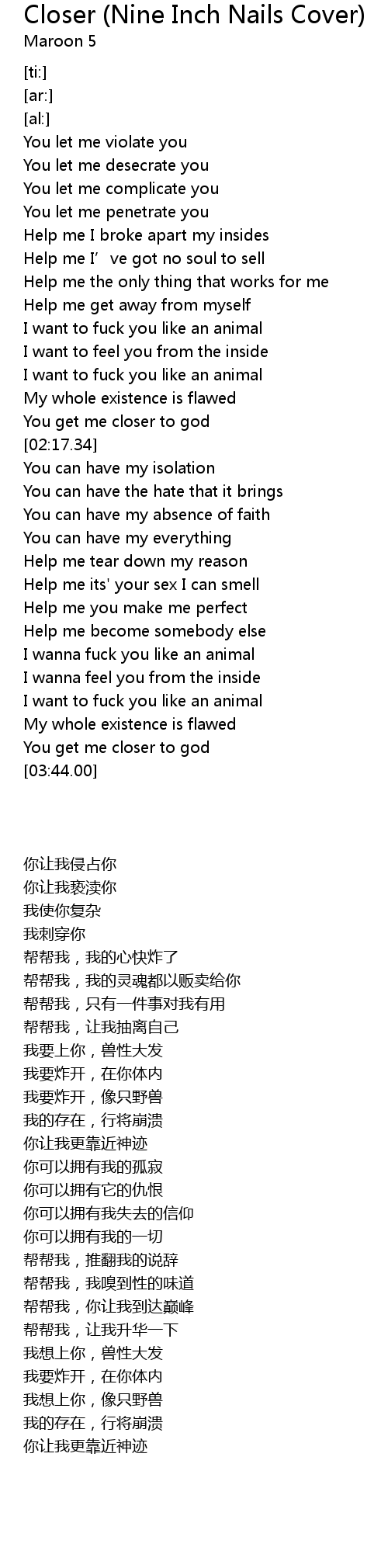 | [03:17.54] | I want to fuck you like an animal |
