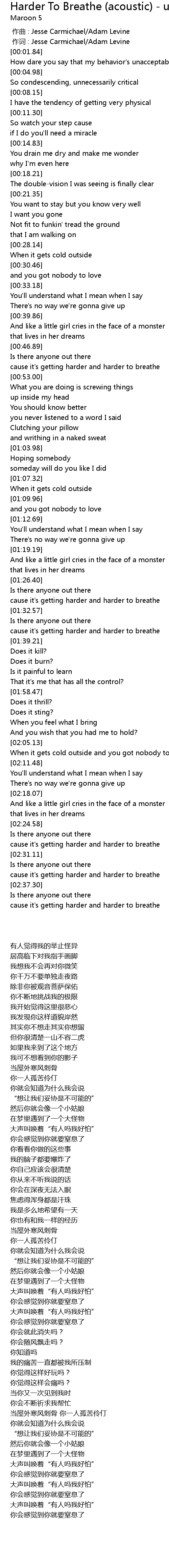 | [00:00.361] | zuo ci : Jesse Carmichael Adam Levine |