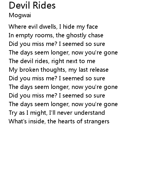 | The devil rides, right next to me | |