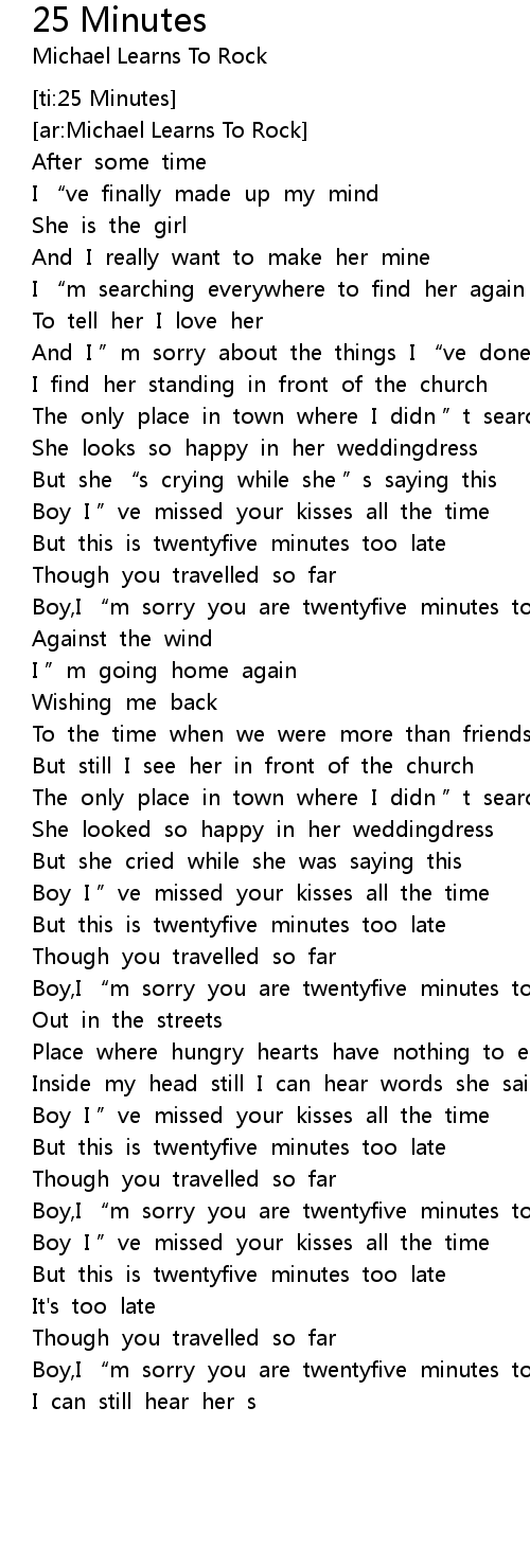 | [03:31.19] | Boy,I “m sorry you are twentyfive minutes too lat |
