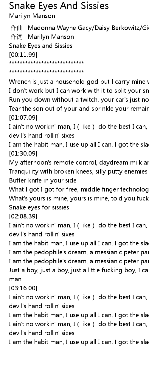 | [00:00.00] | 作曲 : Madonna Wayne Gacy/Daisy Berkowitz/Gidget Gein |
