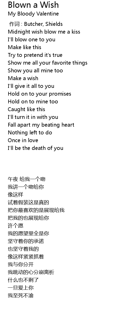 | [00:19.51] | Midnight wish blow me a kiss |
