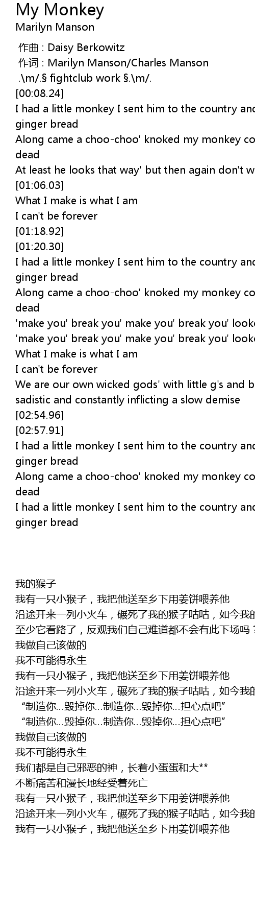 | [00:01.00] | zuò cí : Marilyn Manson Charles Manson |