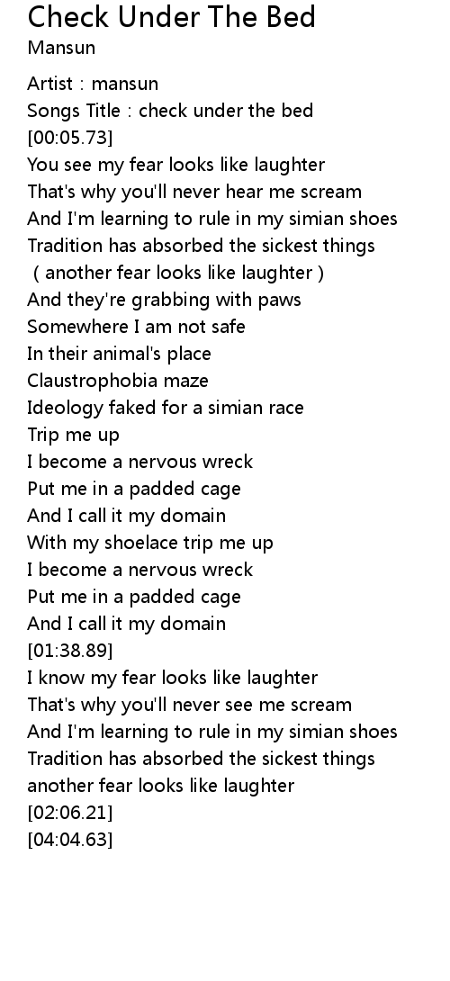 | [00:02.16] | Songs Title: check under the bed |