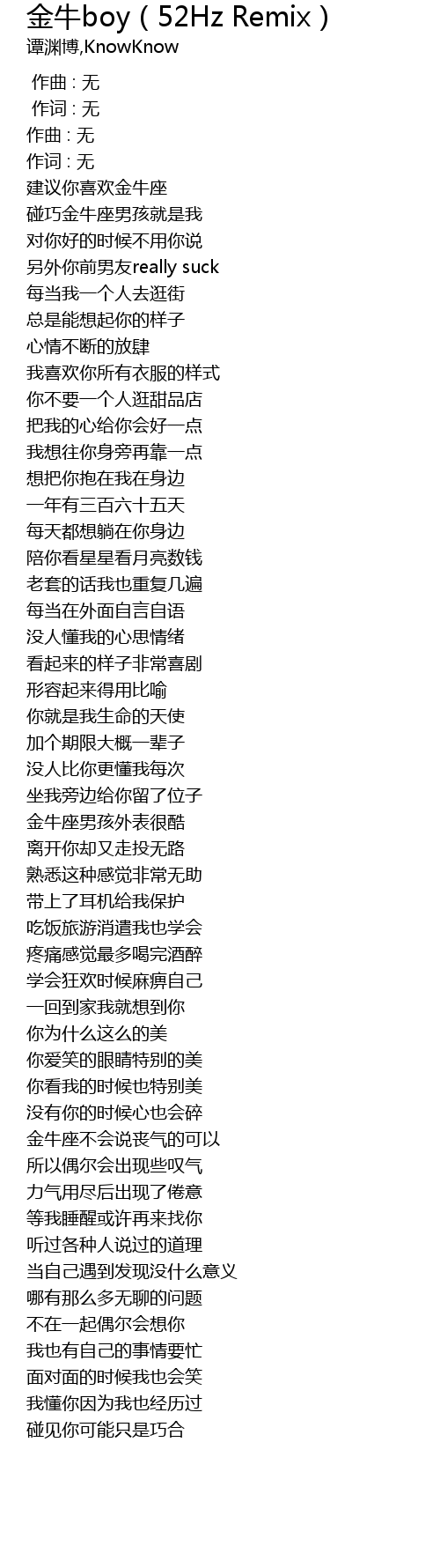 | [01:22.59] | 金牛座男孩外表很酷 |