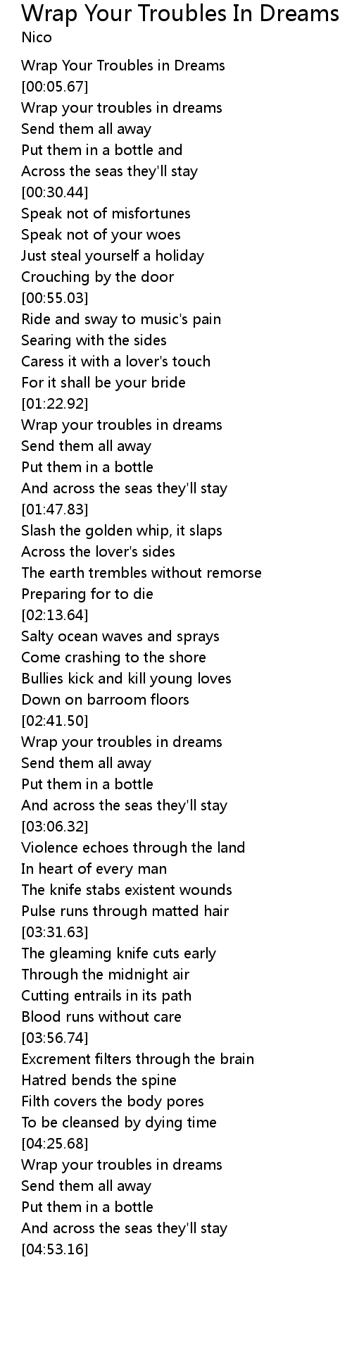 Wrap your troubles in dreams |