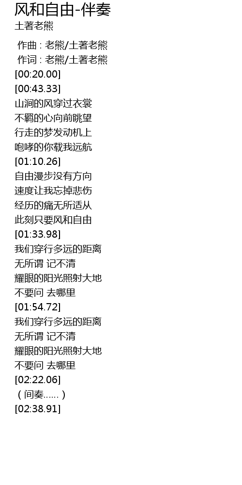 | [00:01.000] | 作词 : 老熊/土著老熊 |