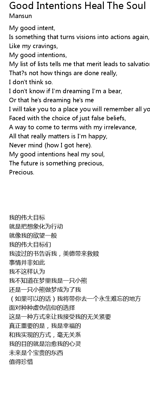 My good intentions heal my soul, |