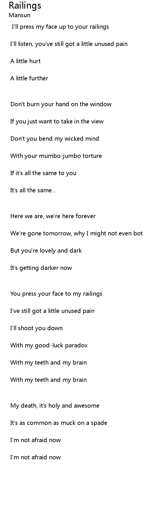 You press your face to my railings |
