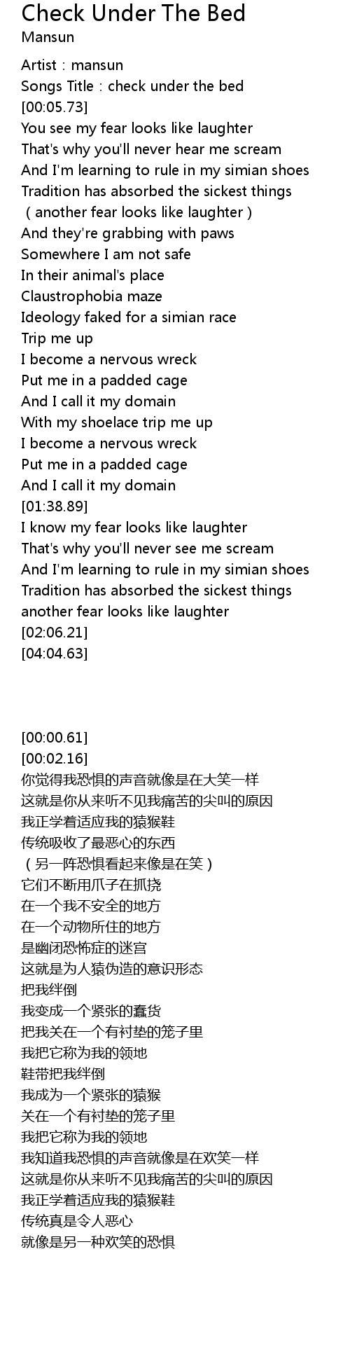 | [00:36.58] | That' s why you' ll never hear me scream |