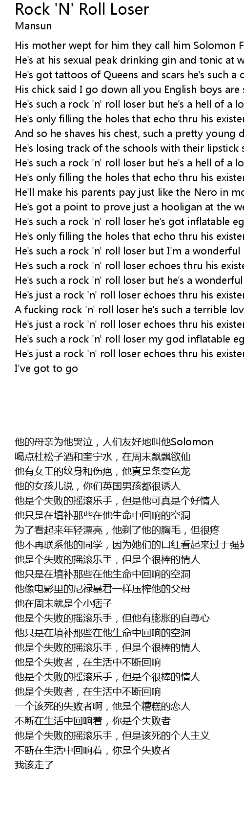 A fucking rock 'n' roll loser he's such a terrible lover |