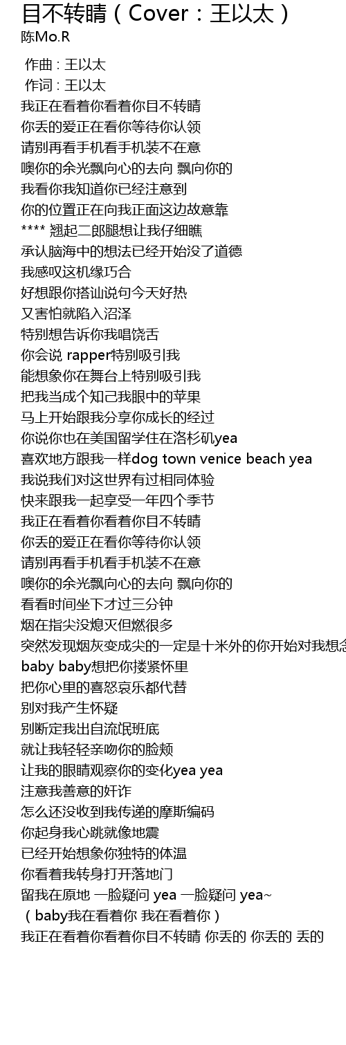 | [00:19.13] | 我正在看着你看着你目不转睛 |