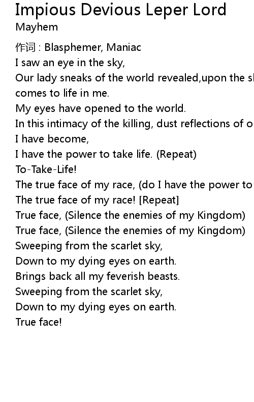 | True face, Silence the enemies of my Kingdom | |