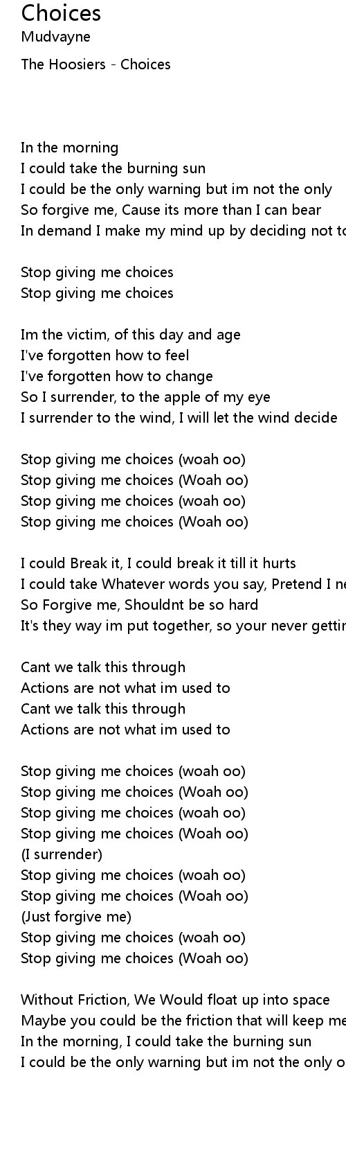 Stop giving me choices (woah oo) |