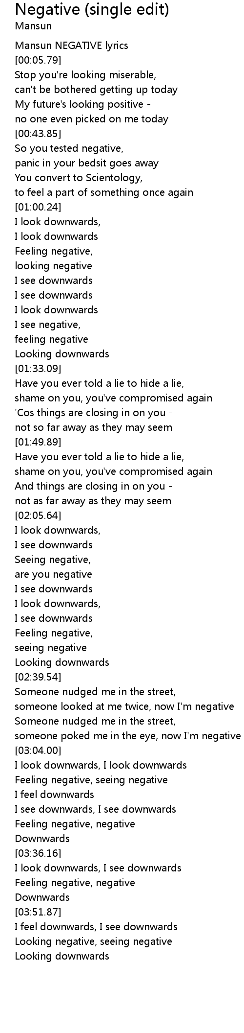 Negative (single edit) Lyrics