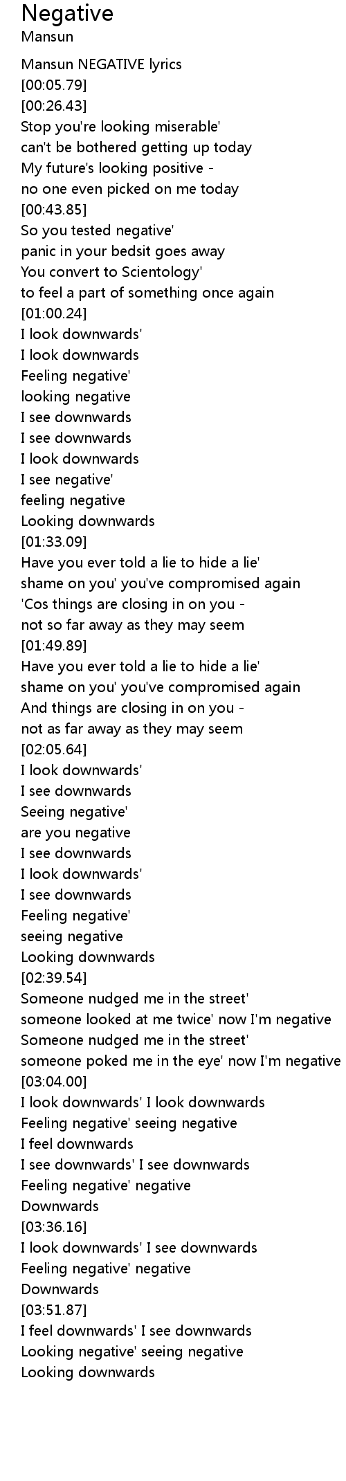 Mansun NEGATIVE lyrics |