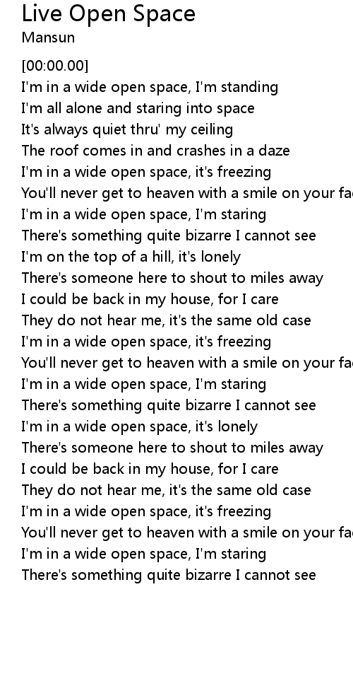 I'm in a wide open space, I'm standing |