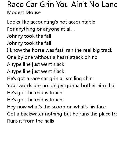 He's got a race car grin all smiling chin |