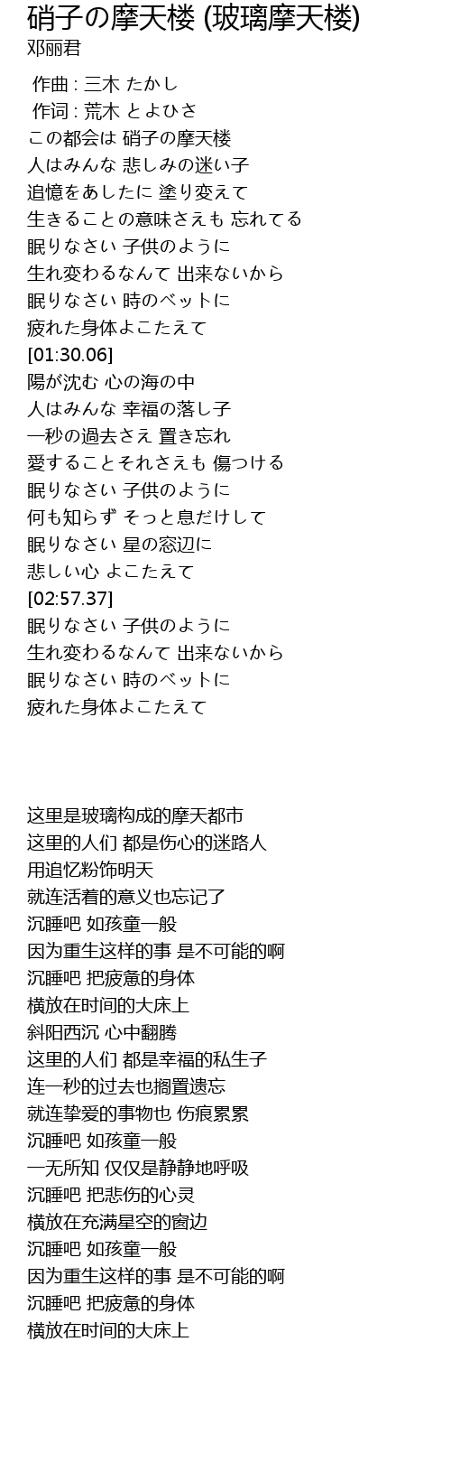 | [00:17.59] | この都会は 硝子の摩天楼 |