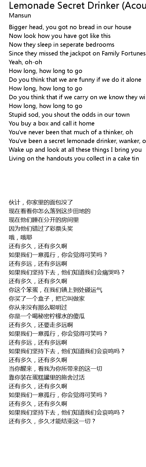 Lemonade Secret Drinker (Acoustic Version) - unplug Lyrics