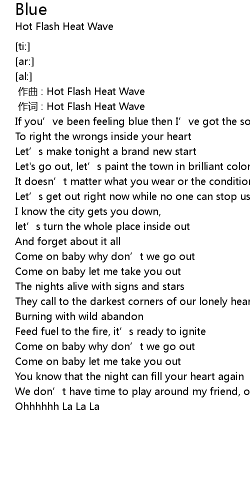 | [00:01.000] | 作词 : Hot Flash Heat Wave |