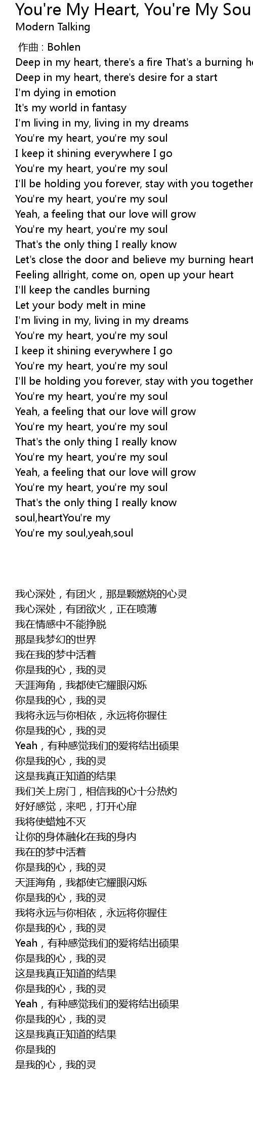 | [00:40.42] | Deep in my heart, there' s a fire That' s a burning heart |