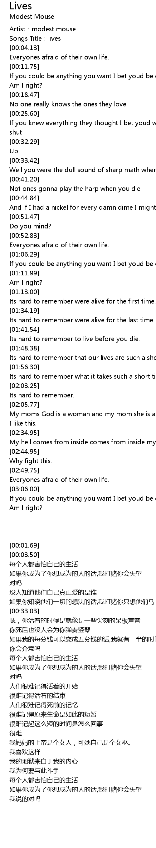 | [01:35.66] | Its hard to remember were alive for the last time. |