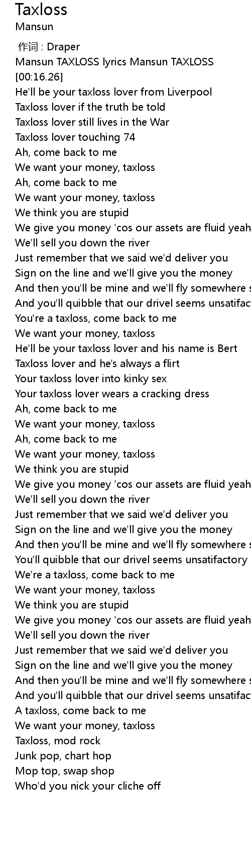 | [00:13.33] | Mansun TAXLOSS lyrics Mansun TAXLOSS |