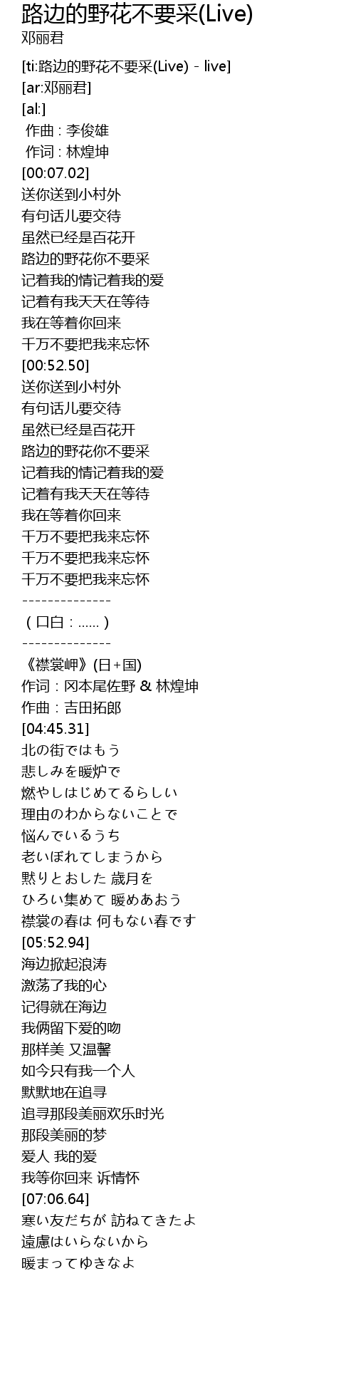 | ti: lù biān de yě huā bú yào cǎi Live live | |