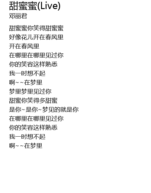 | [00:07.749] | 甜蜜蜜你笑得甜蜜蜜 |