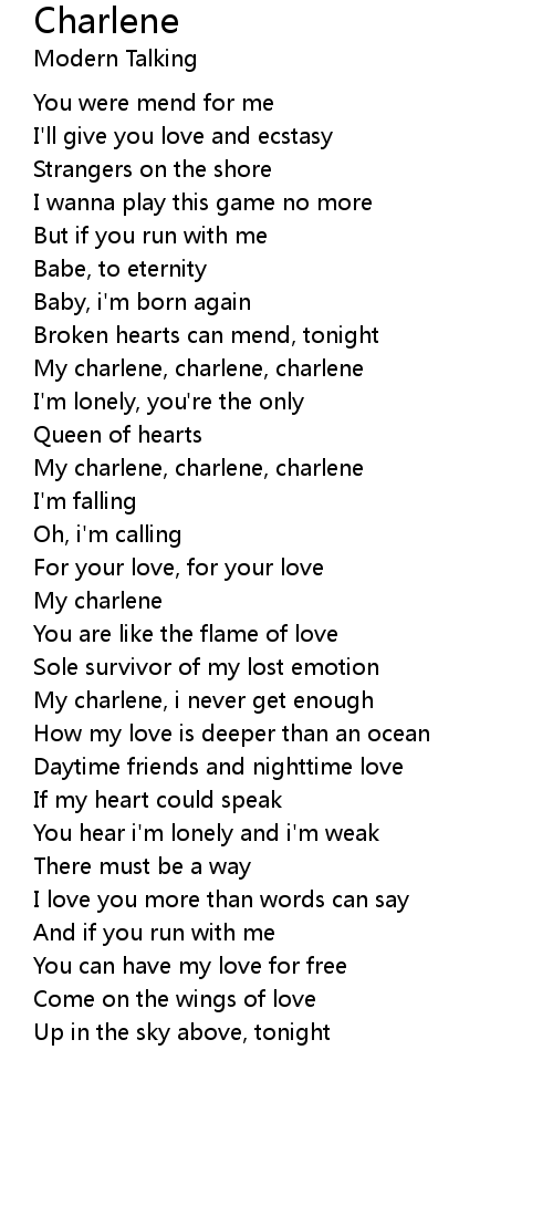 My charlene, charlene, charlene |
