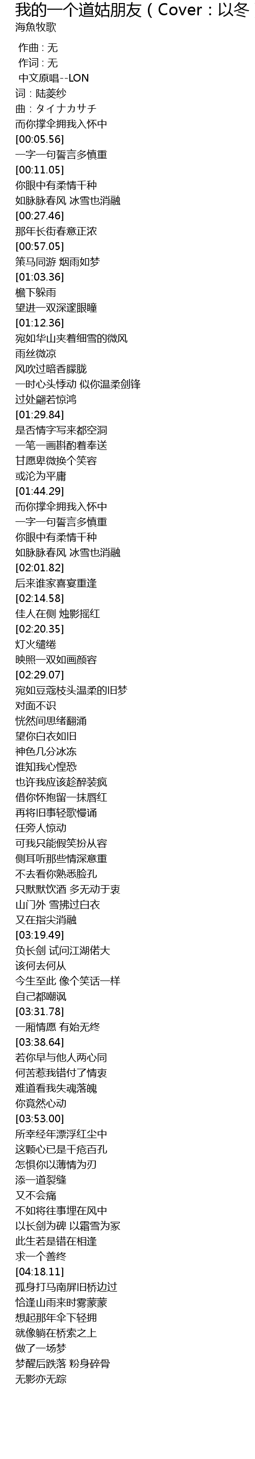 | [04:18.67] | 孤身打马南屏旧桥边过 |