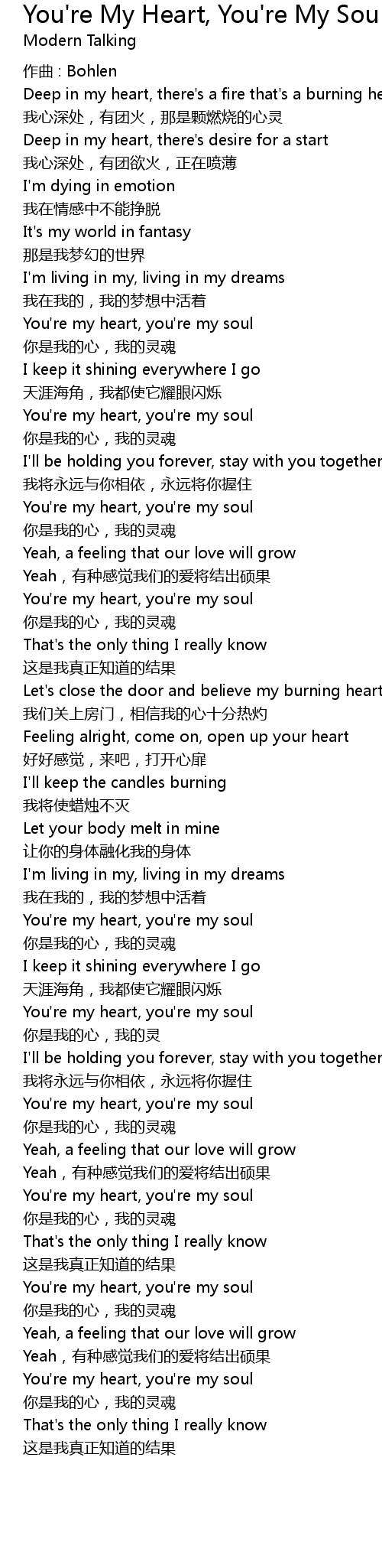 | nǐ shì wǒ de xīn, wǒ de líng hún | |