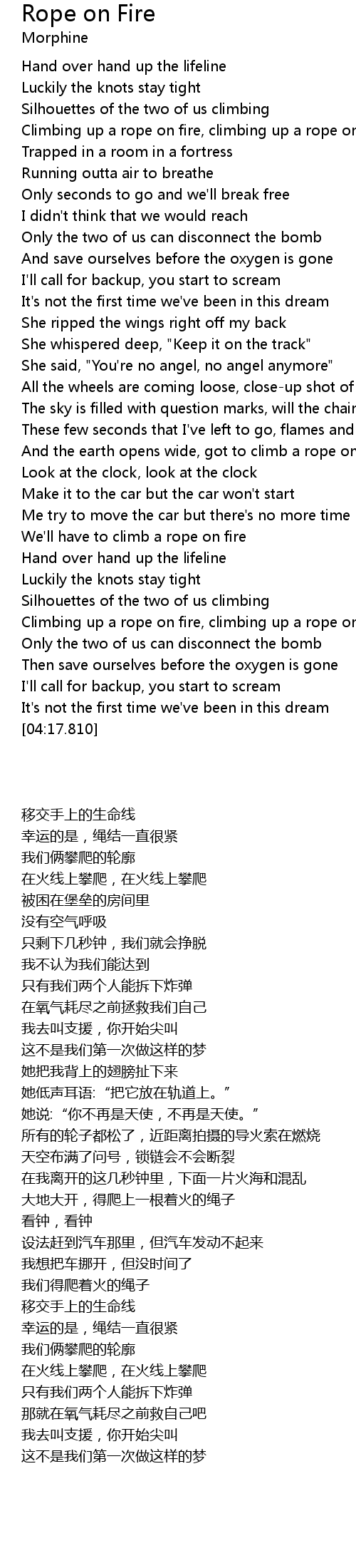 | [03:37.360] | Climbing up a rope on fire, climbing up a rope on fire |