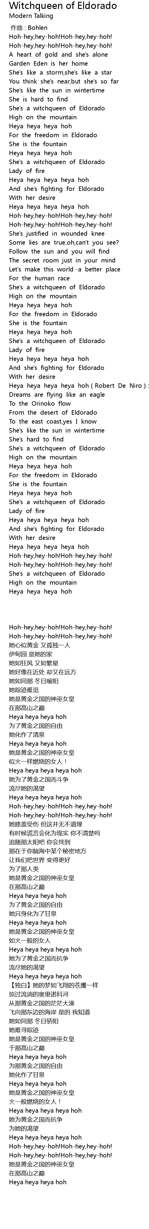 | [02:59.394] | She' s a witchqueen of Eldorado |