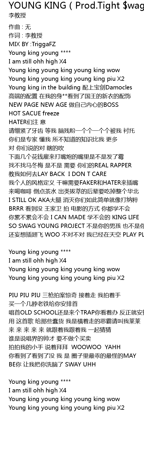 | Song | YOUNG KING(Prod.Tight $wag)China ver |