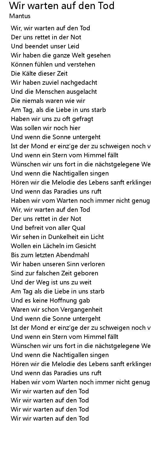 | Song | Wir warten auf den Tod |