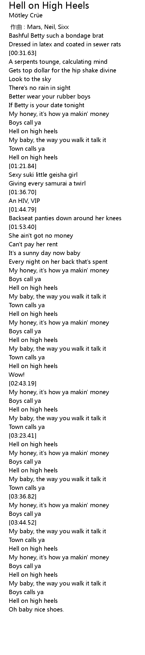 | [03:59.23] | Hell on high heels |
