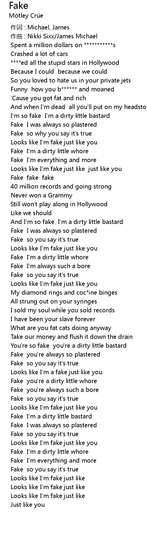 | [01:02.756] | Fake I' m a dirty little whore |