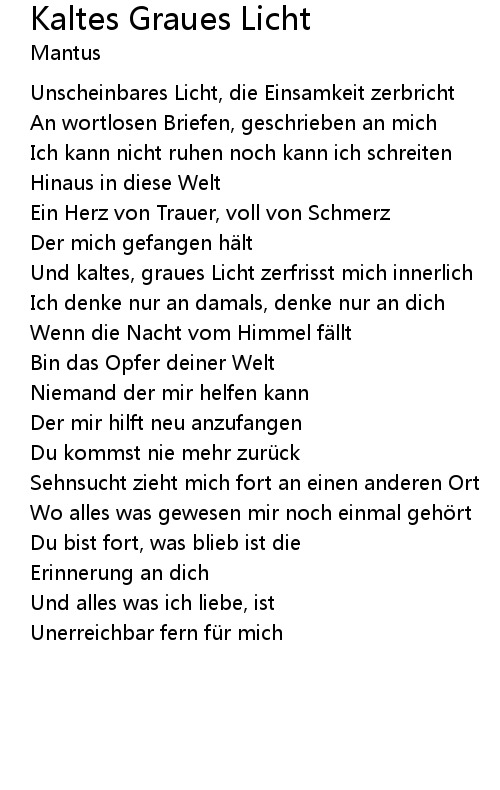 | Und kaltes, graues Licht zerfrisst mich innerlich | |