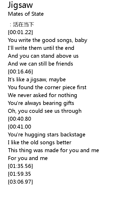 | [00:16.65] | It' s like a jigsaw, maybe |