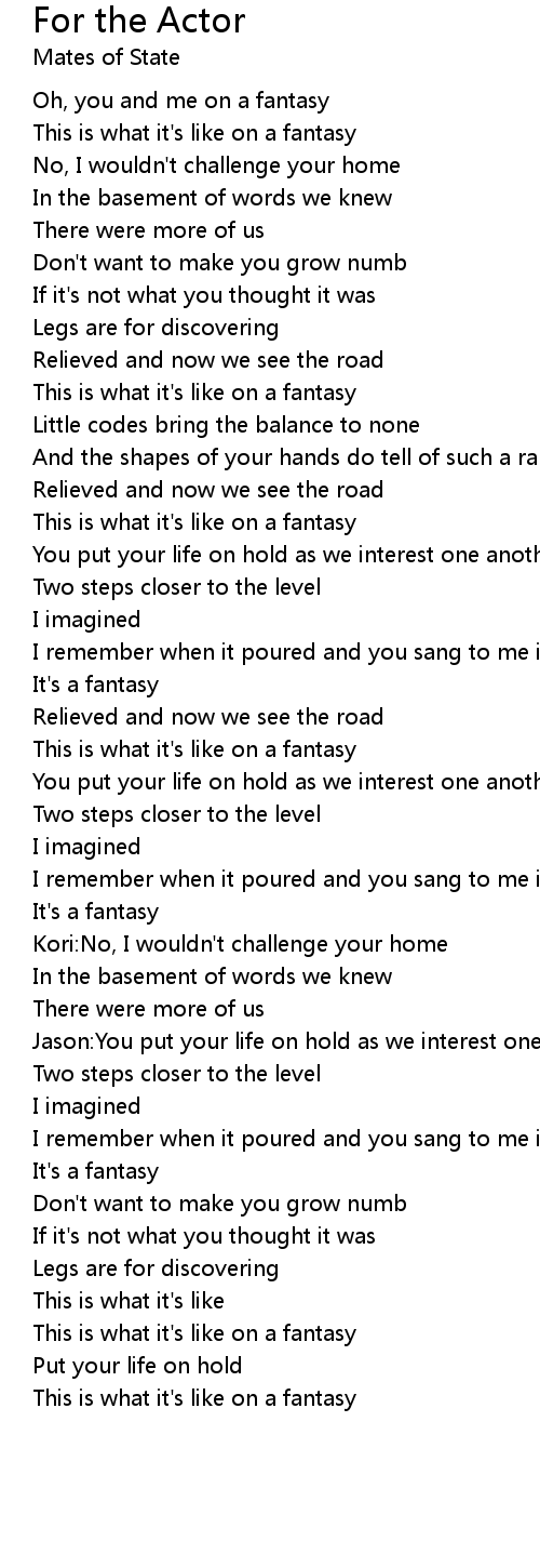 Oh, you and me on a fantasy |