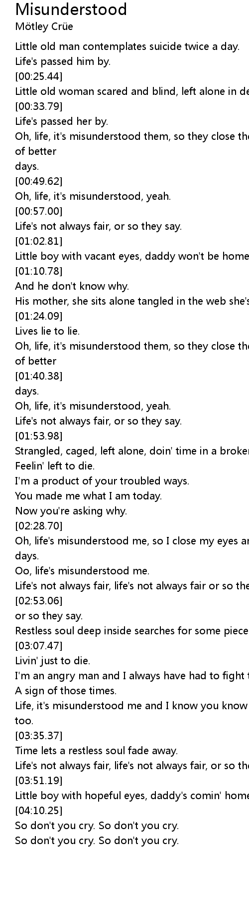 Life, it's misunderstood me and I know you know that you've been there too. |