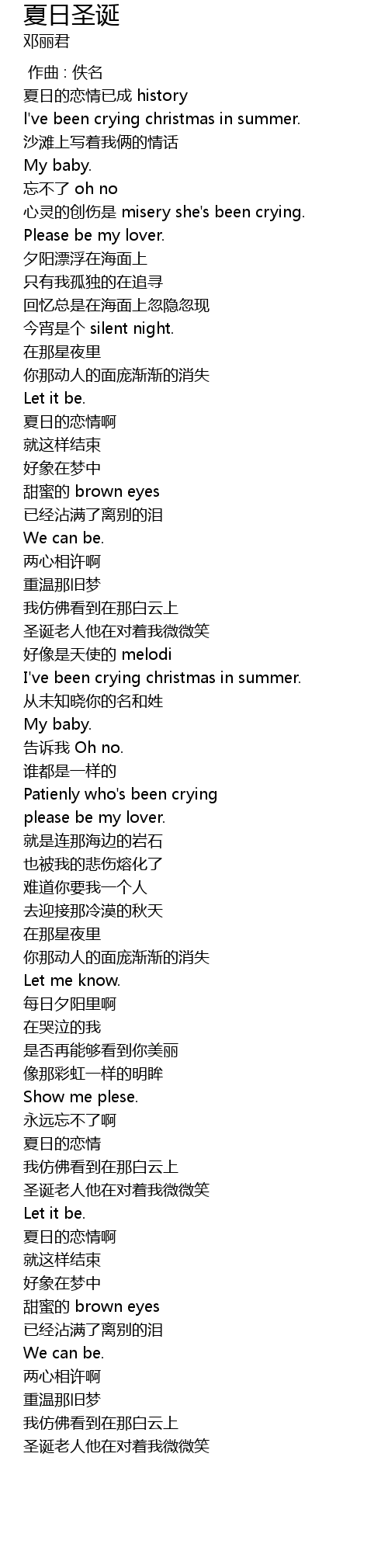 | [00:21.60] | l' ve been crying christmas in summer. |