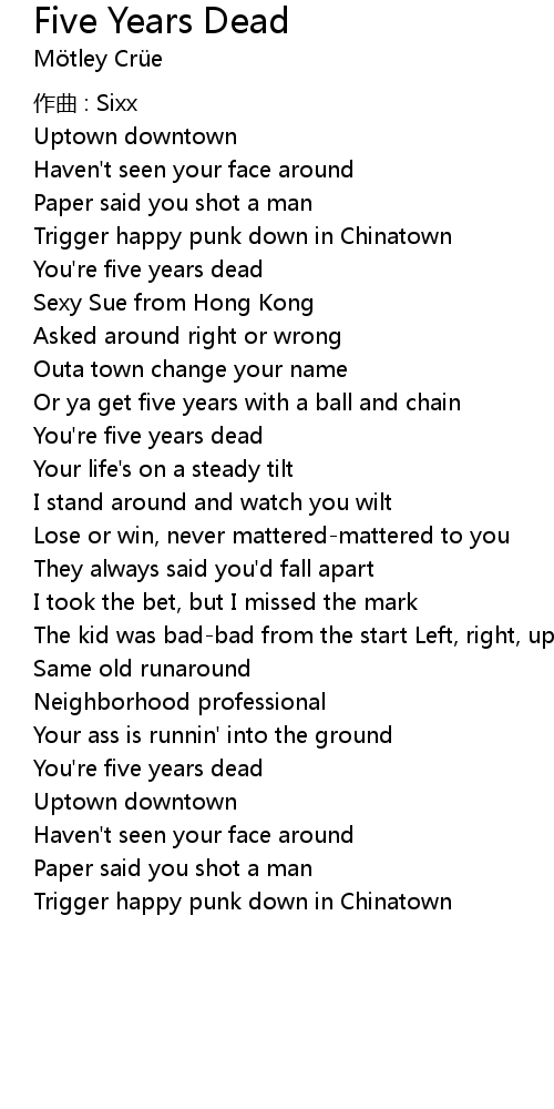 | You' re five years dead | |