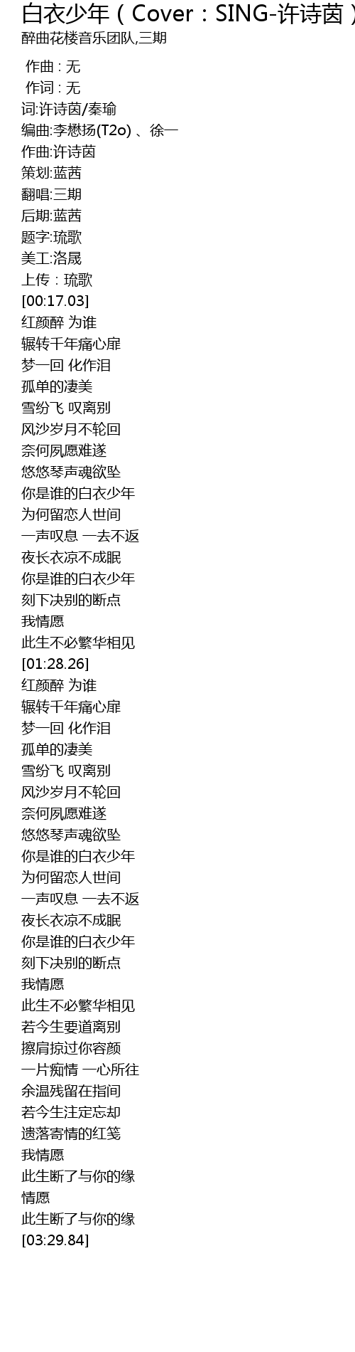 | [00:01.26] | 词:许诗茵/秦瑜 |