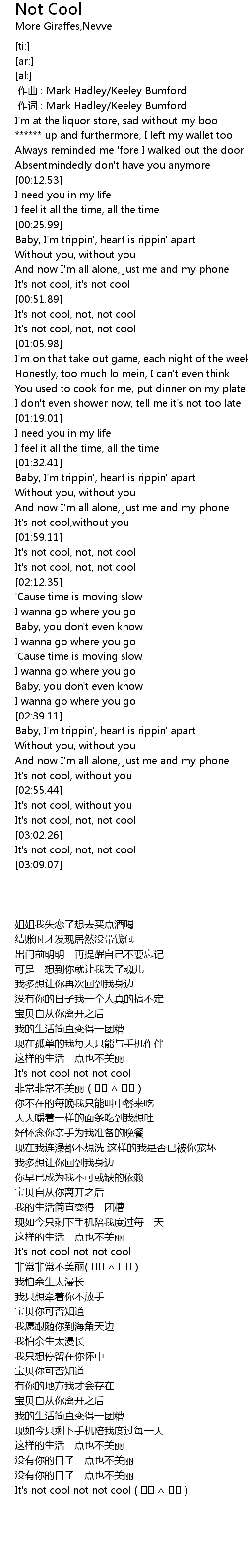 | [01:45.07] | Baby, I'm trippin', heart is rippin' apart |