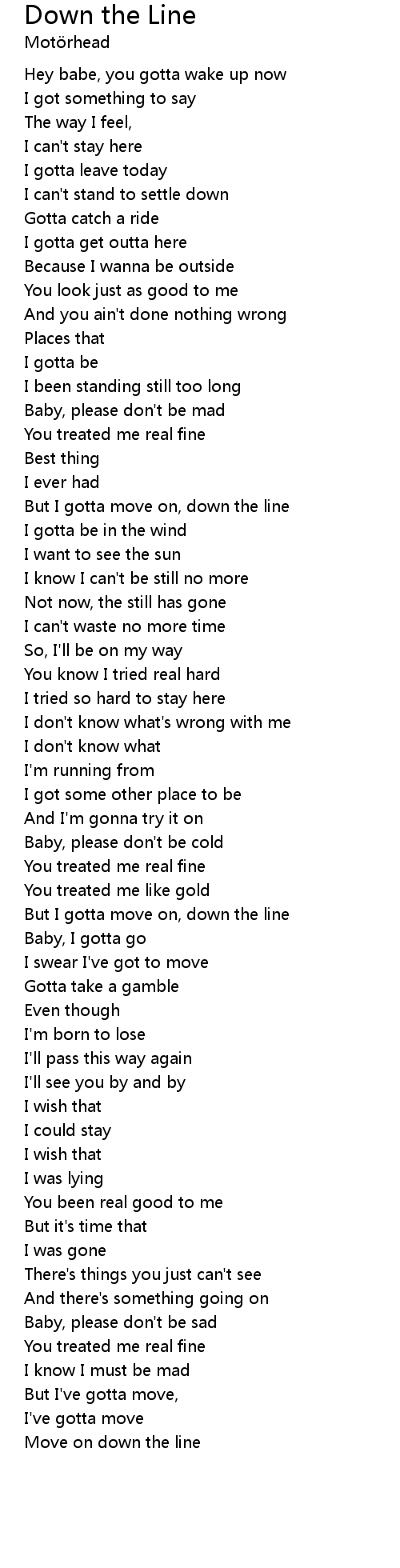 | But I gotta move on, down the line | |
